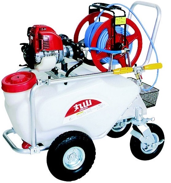 エンジンとセットした動力噴霧機です。